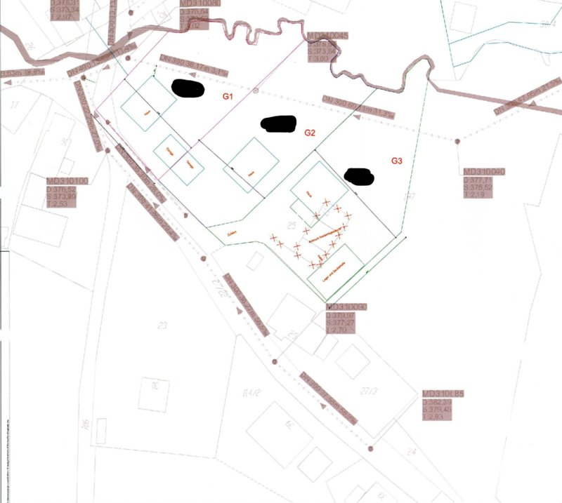 Antrag auf Vorbescheid auf Neubau von 3 Einfamilienhäusern und einer Maschinenhalle auf Fl. Nrn. 25 u. 197, Gemarkung Mengersdorf