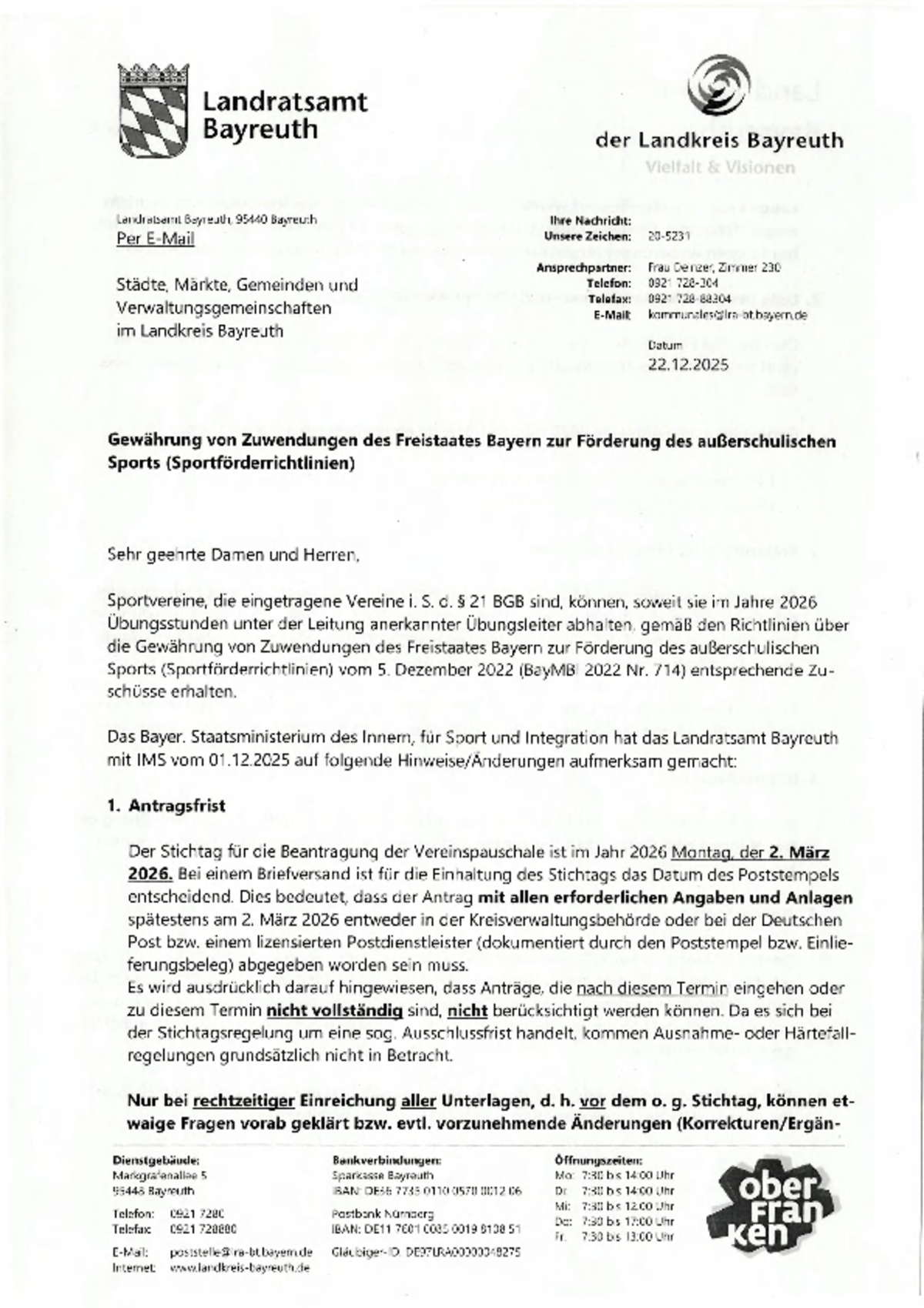 zur Förderung des außerschulischen Sports (Sportförderrichtlinien)