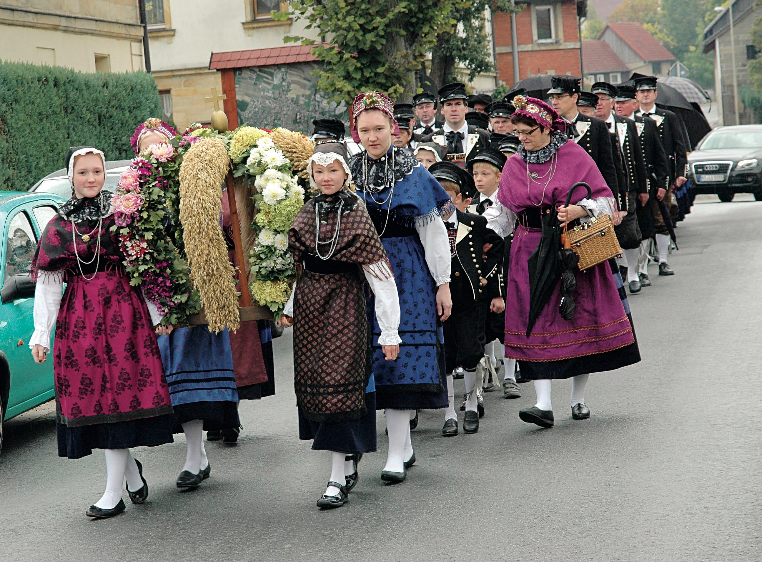 Erntedankfest - Einzug der Hummelbauern mit Erntekrone zum Gottesdienst
