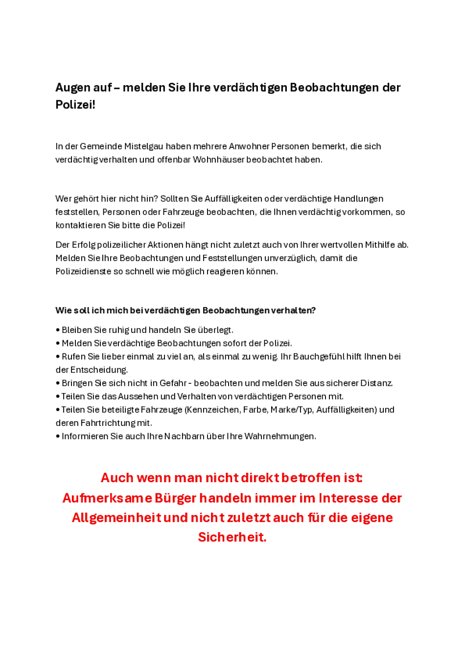 melden Sie Ihre verdächtigen Beobachtungen der Polizei!!!