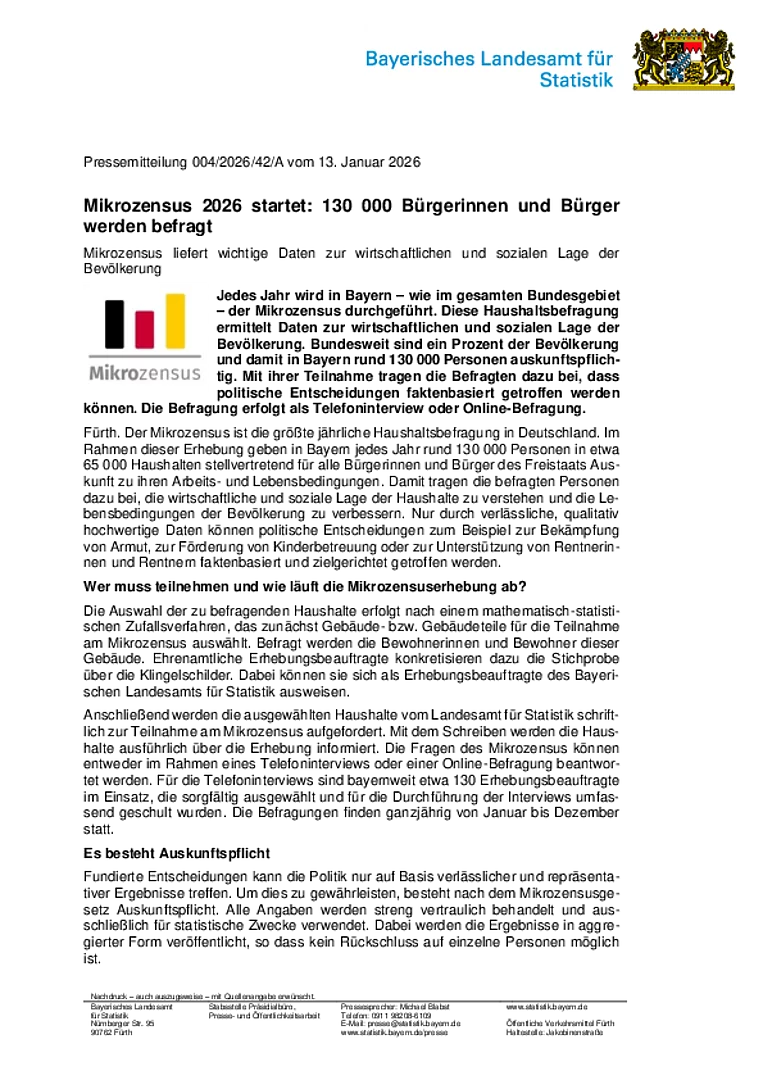 Mikrozensus liefert wichtige Daten zur wirtschaftlichen und sozialen Lage der Bevölkerung