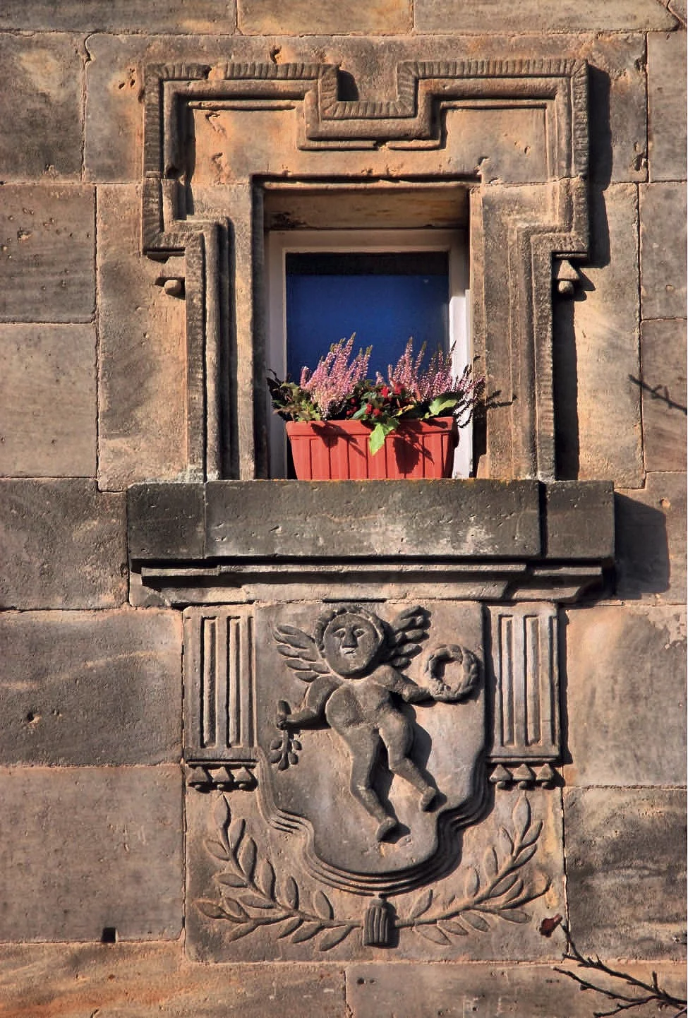 Ganz allgemein ist unter einer Fensterschürze das Mauerfeld unterhalb eines Fensters zu verstehen, das bis ins 20. Jahrhundert häufig mit aufwendigen Verzierungen versehen war. Meistens sind die steinernen Schmuckelemente an der Fassade, die der Straße zugewandt ist. Die einzigartige Kunstform in den Sandsteinhäusern sollte ursprünglich wohl den Wohlstand des Hauseigentümers demonstrieren. Eine außergewöhnliche Vielzahl noch erhaltener Fensterschürzen findet sich im Landkreis Bayreuth. So reihen sich auch in der Bahnhofstraße in Mistelgau einige dieser einzigartigen Häuser mit dem besonderen Fassadenschmuck.